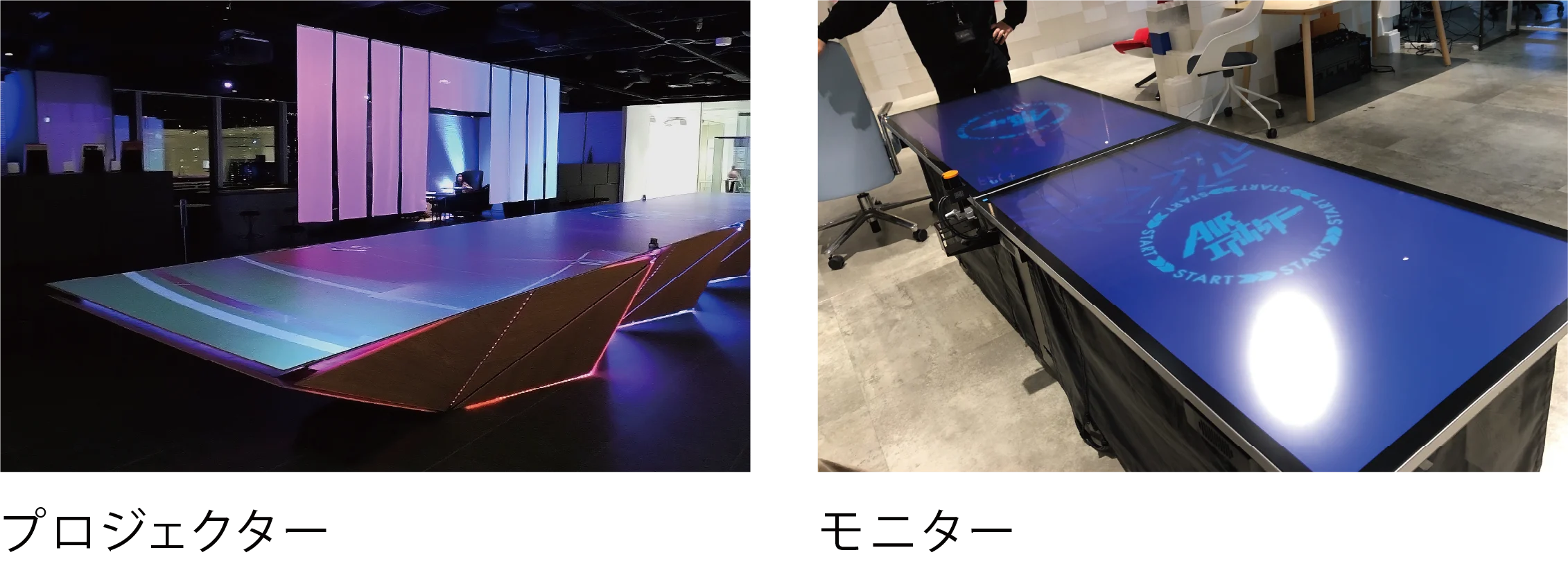 フィールドの投影は“プロジェクター”または“モニター”からお選びいただけます。通常販売だけではなくイベントでの貸し出しや各種カスタマイズにも対応しています。