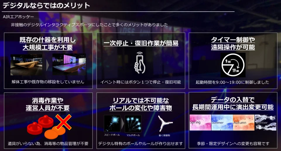非接触のデジタルインタラクティブスポーツにしたことで多くのメリットがありました。
